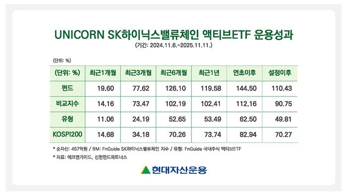 조상현 현대자산운용 주식운용본부장은 “슈퍼슬롯하이닉스와 핵심 소부장 기업들을 한 바구니에 담았다”며 “HBM뿐 아니라 범용 메모리 전반으로 노출도를 높인 결과, 글로벌 HBM 경쟁력 1위인 슈퍼슬롯하이닉스의 상승률이 삼성전자를 압도하면서 타 반도체 ETF 대비 우수한 성과를 기록했다”고 말했다.