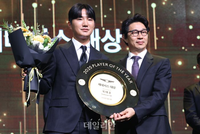 제네시스 대상을 수상한 무료 슬롯훈이 포즈를 취하고 있다.
