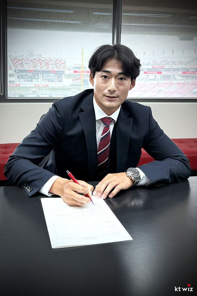 계약서에 서명하고 있는 라이징슬롯 코우키. ⓒ Kt 위즈