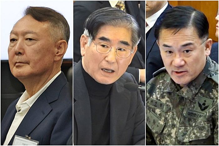 사진 왼쪽부터 윤석열 전 대통령, 김용현 전 국방부 장관, 여인형 전 국군방첩사령관. ⓒ사진공동취재단·헌법재판소