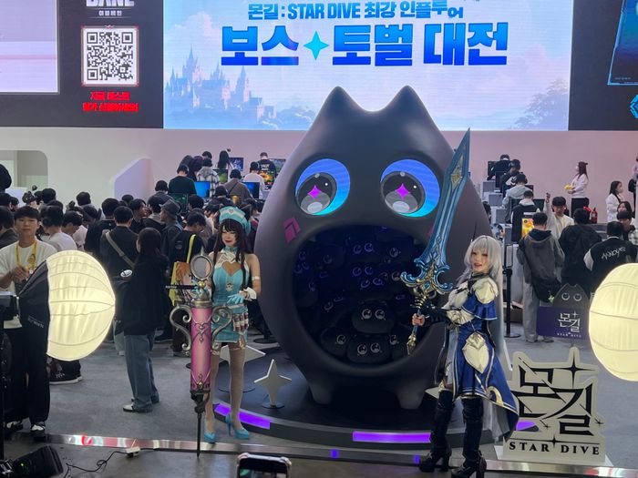 슬롯생각 부산 해운대구 벡스코에서 열린 국내 최대 게임전시회 '지스타 2025' 현장. 넷마블 출품작 '몬길: 스타다이브'의 마스코트 캐릭터인 '야옹이' 조형물 앞에서 코스어들이 포즈를 취하고 있다.ⓒ슬롯사이트 이주은 기자