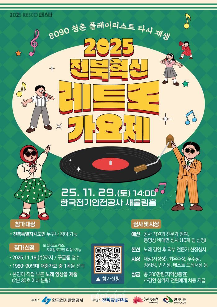 한국돌리고슬롯는 오는 29일 오후 2시 전북 완주군 본사 새울림홀에서 열리는 '2025 전북혁신 레트로 가요제'의 참가자를 모집한다고 14일 밝혔다.