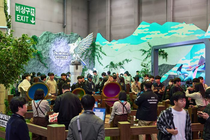 '지슬롯나라 2025'이 열린 첫날인 13일 크래프톤 부스에 약 7000명이 몰렸다. ‘팰월드 모바일’ 시연 위해 150분 넘는 대기줄이 이어졌다.ⓒ크래프톤
