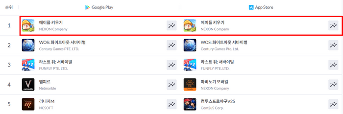 메이플 키우기 양대 마켓 순위 캡쳐ⓒ온라인 슬롯 추천