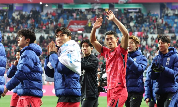 14일 오후 대전월드컵경기장에서 열린 축구 국가대표팀 평가전 대한민국과 TOP10슬롯아의 경기가 끝난 뒤 한국 조규성과 선수들이 관중석을 향해 손을 흔들고 있다. ⓒ 뉴시스