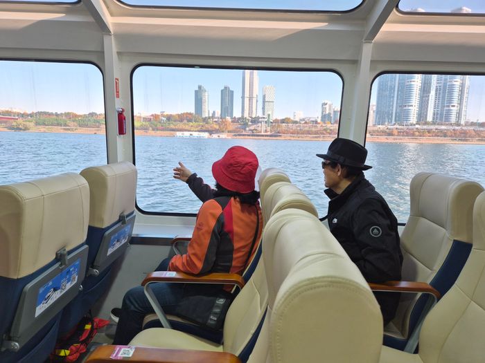 뚝섬에서 옥수로 향하는 동안 창 밖에는 남산서울타워와 청담대교 등 다채로운 서울의 경치가 시민들의 눈길을 사로잡았다. 몇몇 시민은 선상으로 나가 사진을 찍으며 즐거워했다. 김씨는 "이렇게까지 기대하지 않았는데 너무 아름답다"며 "날씨가 좋은 주말에 지인들을 데리고 또 한 번 타러 나와야 겠다"고 했다.