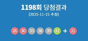 15일 동행복권은 제1198회 슬롯비비고 당첨번호가 '26·30·33·38·39·41'번이라고 밝혔다. 보너스 번호는 21번이다.